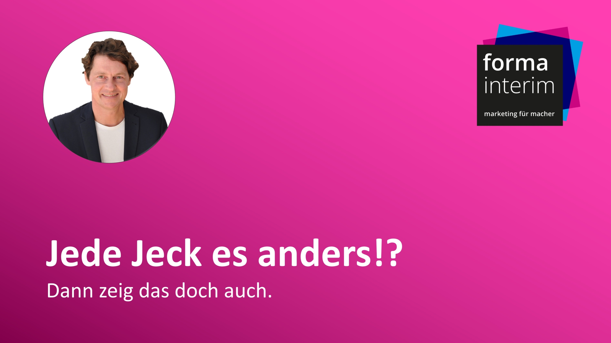 Jede Jeck es anders!? Dann zeig das doch auch.